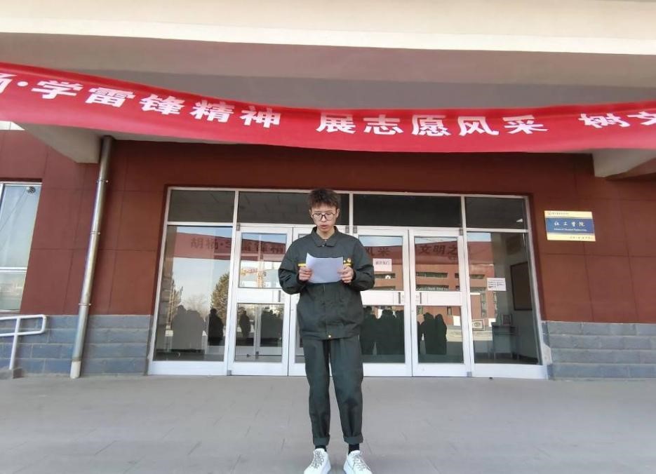 本活动旨在深入学习贯彻习近平总书记关于学雷锋精神的重要论述、大力培育和践行社会主义核心价值观、弘扬雷锋精神和“奉献、友爱、互助、进步”的志愿精神。活动伊始,志愿者代表刘伟和高文毅通过讲述雷锋的先进事迹,宣传学习了雷锋精神内涵,号召大家从日常点点滴滴做起,以实际行动践行雷锋精神。之后全体志愿者在逸夫楼周围擦洗宣传栏、捡烟头、清扫周围环境卫生等志愿服务活动;同时各班级通过学习园地、团课以及短视频的形式学习宣传了雷锋精神。