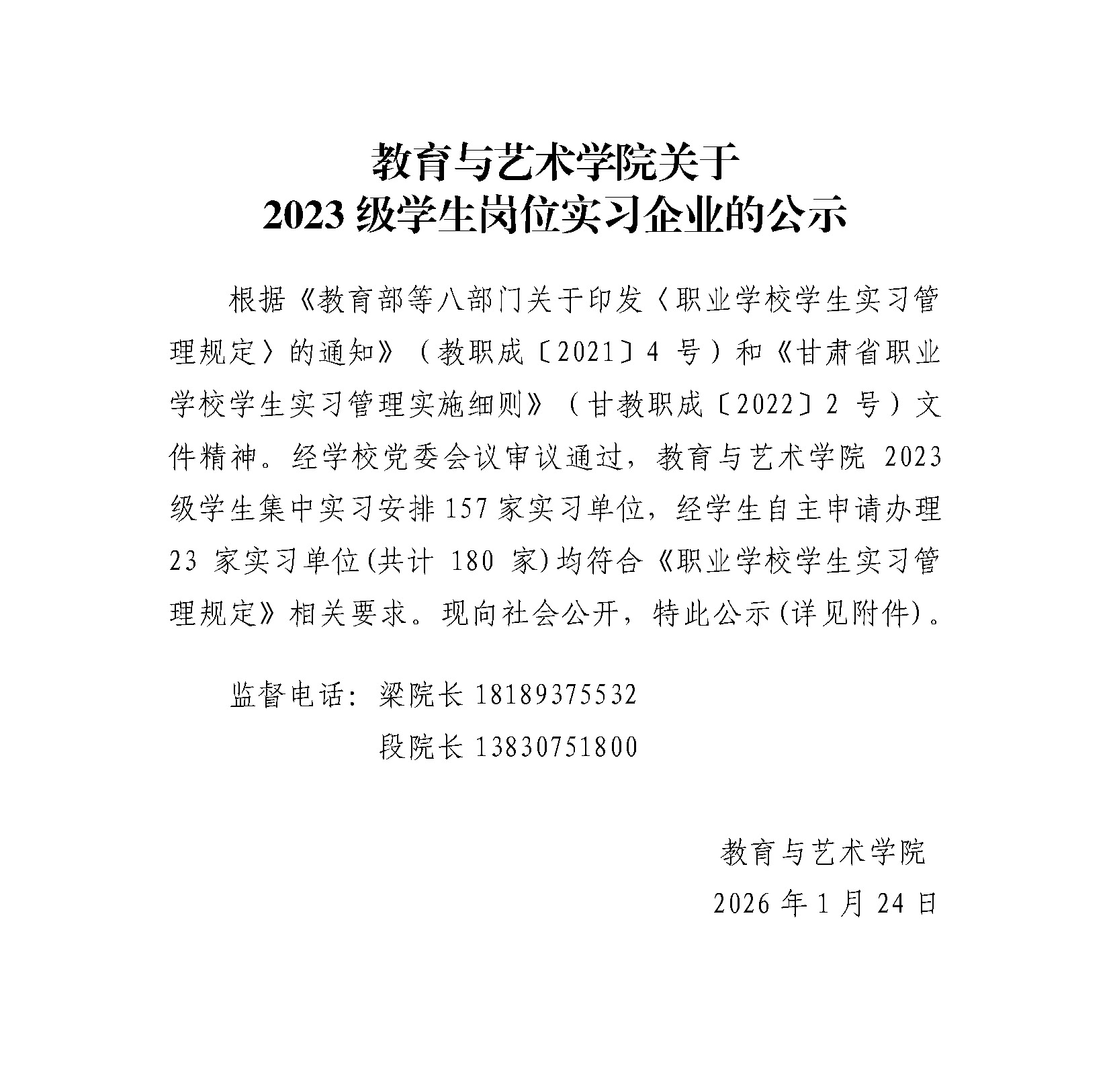 教育与艺术学院关于2023级学生岗位实习企业的公示