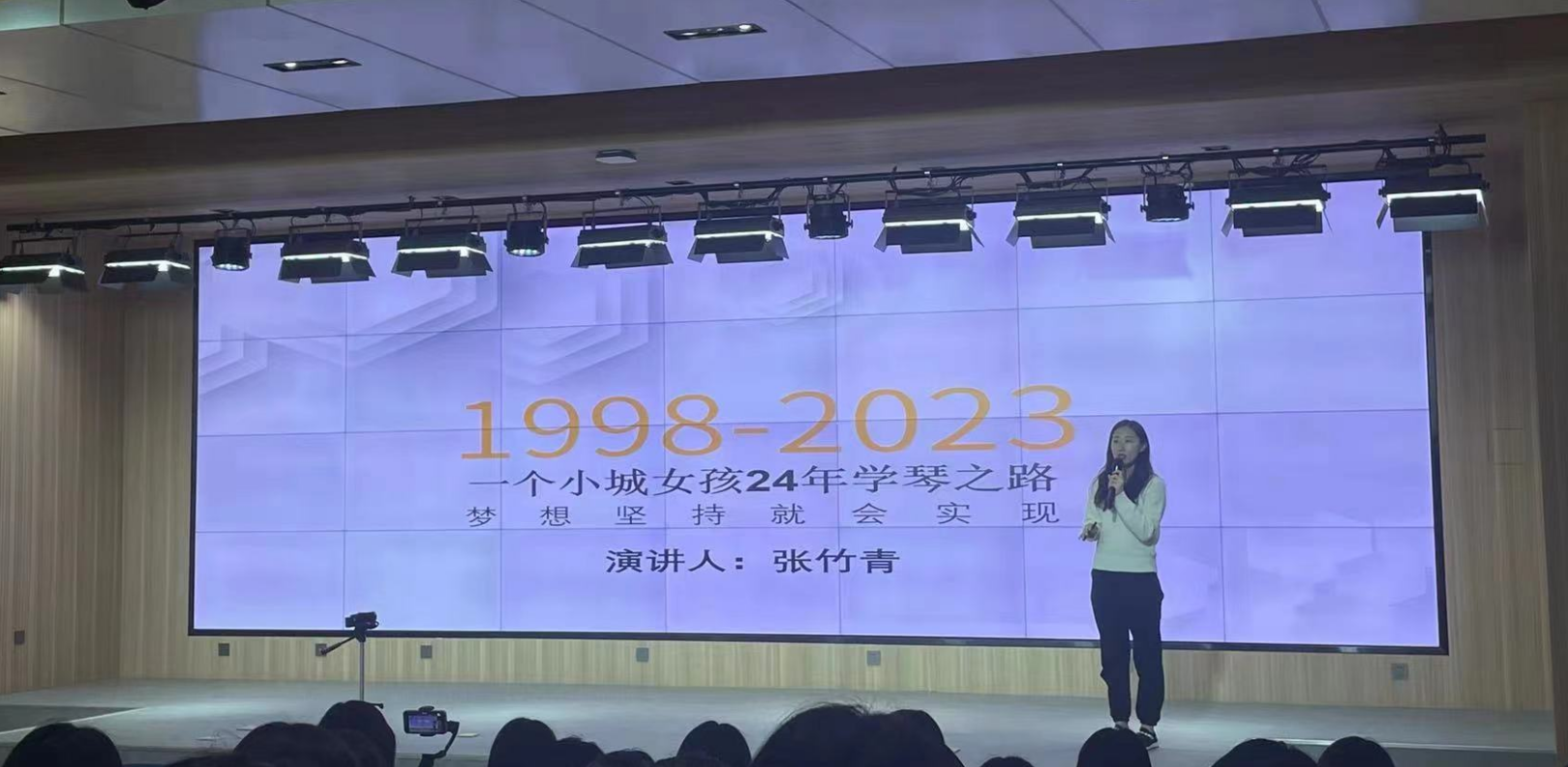 张老师以“梦想坚持就会实现”为题,从“考学前、附中和大学、出国留学、就业创业”四个阶段分享自己求学创业历程。张老师讲述了其在求学中“确立目标、拜访老师、转辗求学、持续练琴、正视缺点、逆袭第一”的经历,及在创业中“寻找契机、整合资源、融合资金、管理企业”的历程。并着重对认识自我、时间管理、心态调整等方面进行了经验分享。张老师的逐梦历程引起在场同学们的认可与共鸣,与会同学纷纷表示,从她的身上明白了计划、行动、反思、调整的重要性。