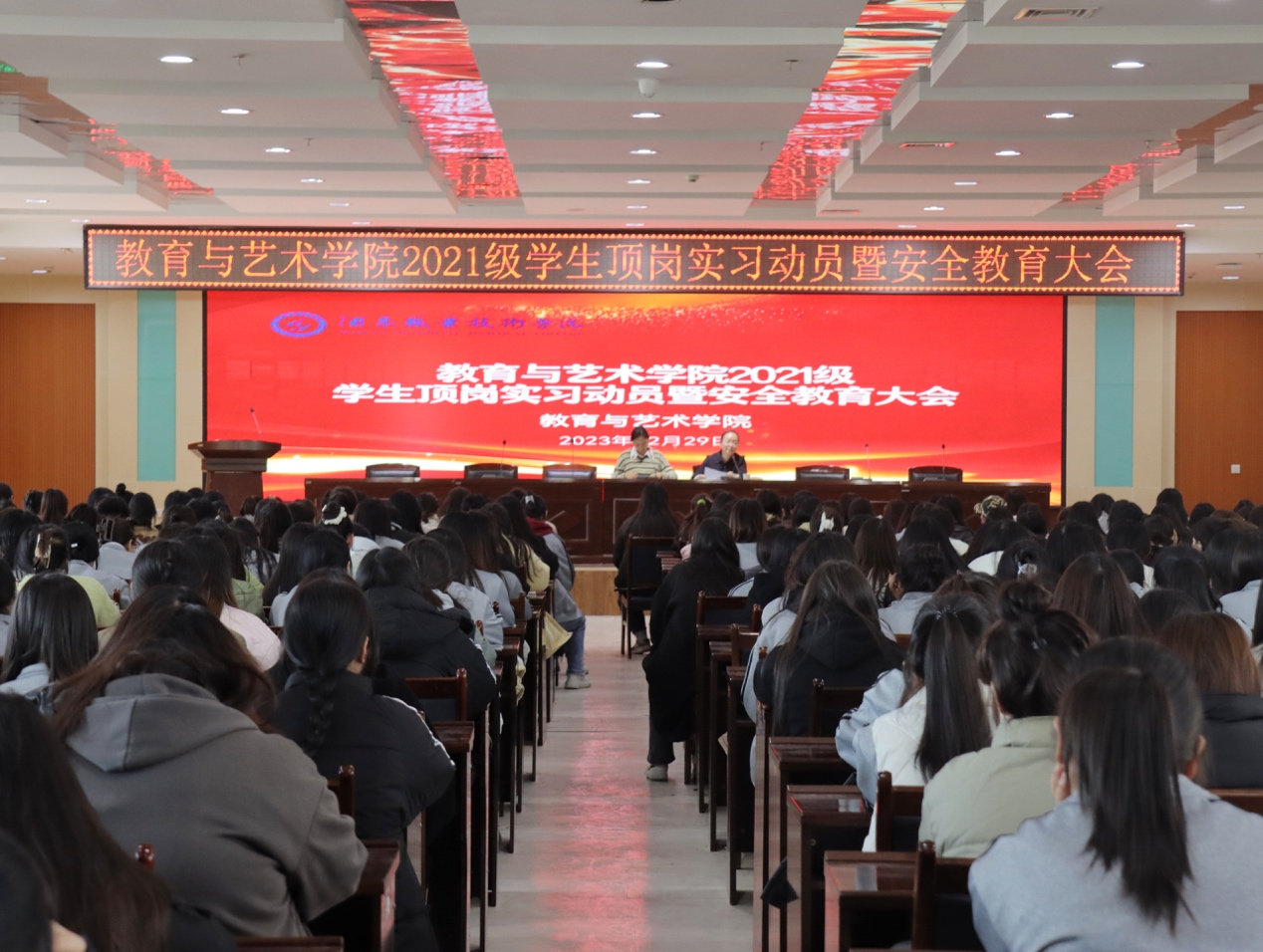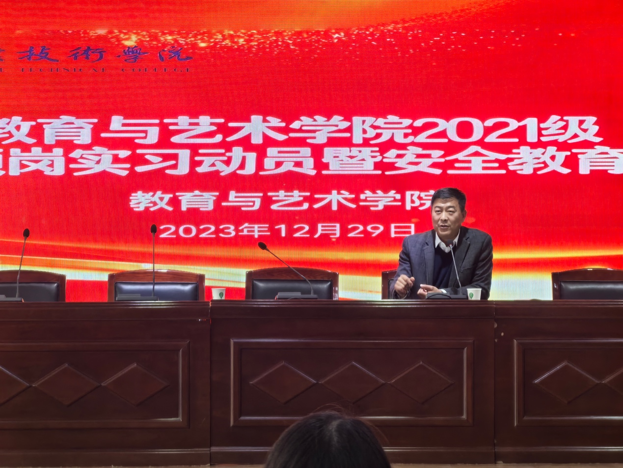 为进一步明确岗位实习目标、明确实习任务、强化实习管理、加强实习安全教育。12月29日,教育与艺术学院在图书馆四楼召开2021级学生岗位实习动员暨安全教育大会。教学管理副院长于芳、学生管理副院长张冬琴及全体2021级学生参加会议,会议由教育与艺术学院党支部书记、院长赵多生主持。