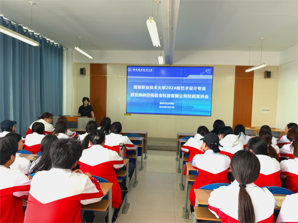 为进一步深化校企协同育人机制,精准对接数字文化产业发展需求,夯实艺术设计专业应用型人才培养根基,引导学生洞悉行业前沿动态、明晰产业发展趋势,搭建优质就业资源对接平台,3月31日下午,教育与艺术学院特邀西安纬纳空间教育科技有限公司史春兰女士,为2024级艺术设计专业学生开展校园专题宣讲活动。