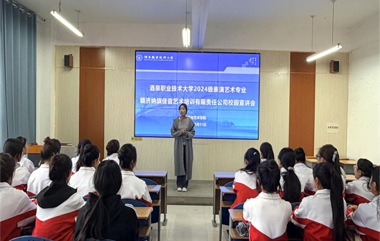 深化校企联动,赋能艺才成长。为进一步畅通艺术人才供需对接渠道,帮助表演艺术专业学生精准研判行业趋势、明晰职业发展路径,3月31日下午,教育与艺术学院邀请额济纳旗佳音艺术培训有限责任公司入校开展专场宣讲活动。2024级表演艺术专业全体学生参会交流。