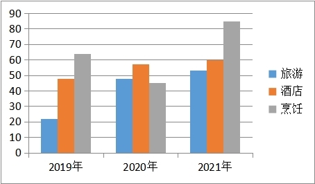 对2021届毕业生3个专业的近三年生源数量变化情况分析,烹饪专业生源上升明显,旅游管理、酒店管理与数字化运营两个专业的生源稳中有升。