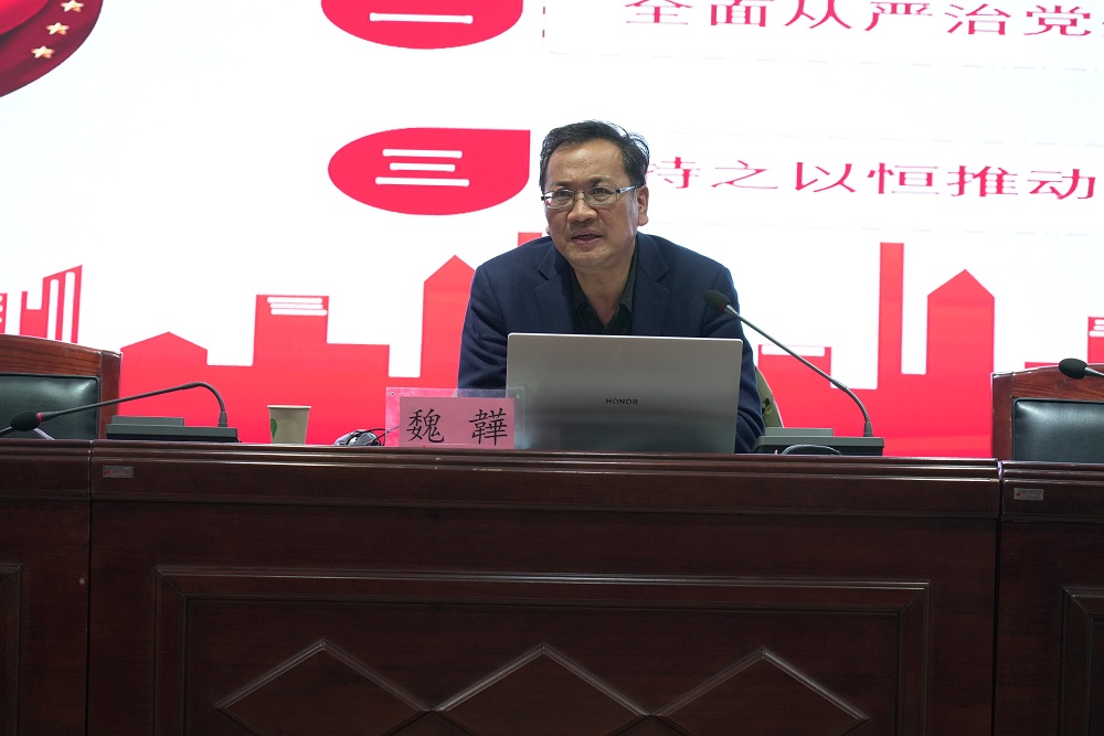 本次宣讲从“全面从严治党是党永葆生机活力、走好新的赶考之路的必由之路”“全面从严治党是新时代伟大变革的鲜明特征” “持之以恒推动全面从严治党向纵深发展”三个方面对全面从严治党进行了系统解读,主题鲜明、条理清楚,讲解深入浅出、联系实际,结合教师师德师风、学生干部作风、学生个人品质提升进行解读,帮助教师、青年学生加深了对党的二十大精神的理解。