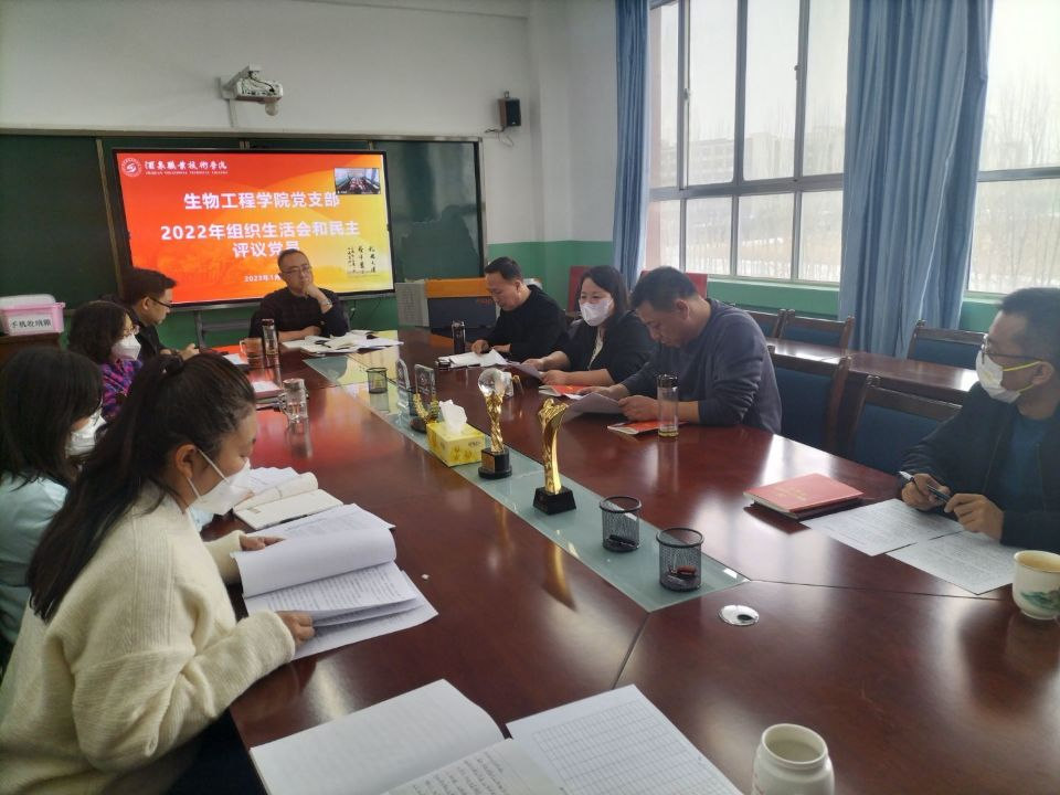 为贯彻落实上级党委的文件精神,严格执行党的组织生活制度,进一步发挥党员先锋模范作用,2023年1月12日早上8:10,生物工程学院党支部在逸夫楼315会议室召开了2022年度组织生活会及民主评议党员大会,生物工程学院党支部全体党员参会。会议由学院党支部书记、院长柳立新同志主持。