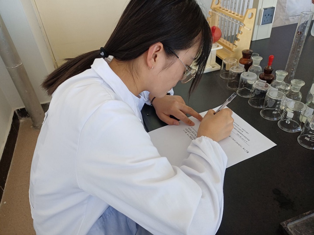 参赛选手进行“重金属含量检测”的滴定操作