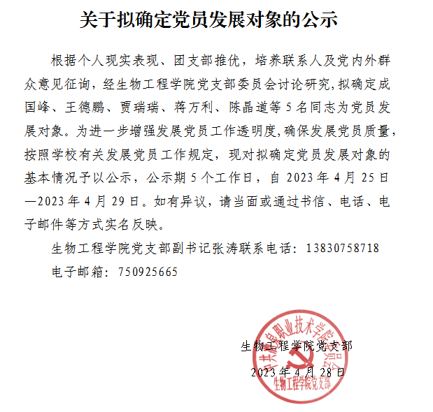关于拟确定党员发展对象的公示