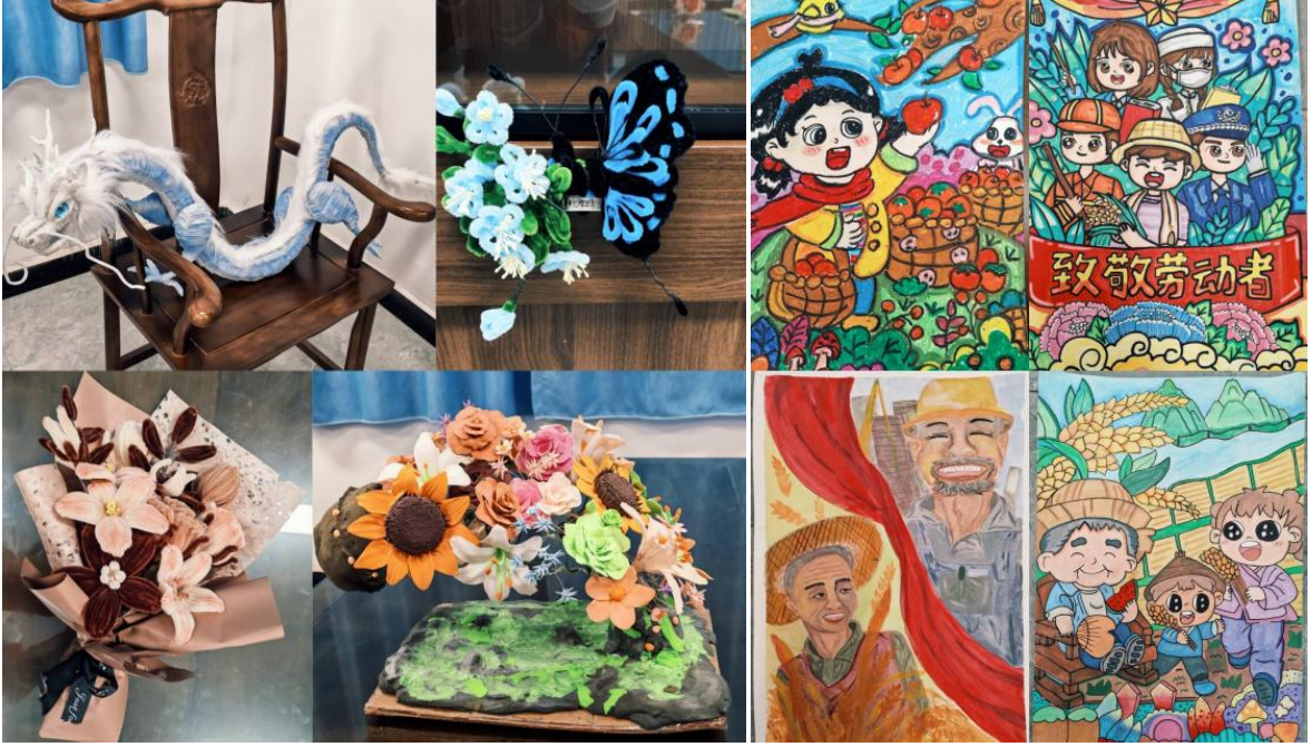 为弘扬劳动精神、培育匠心之美,学院充分发挥专业优势举办“劳动美·青春志”劳动教育周儿童画、手工创意活动。活动中学生们将废旧纸箱、塑料瓶等材料“变废为宝”,制作出精巧的笔筒、装饰画等作品,以“劳动”为主题的儿童画色彩鲜活,生动展现了田间耕作、校园清扫等场景。此次活动将专业技艺与劳动实践相结合,传递“劳动创造美”的理念,有助于学生在动手实践中深化了对工匠精神的理解。