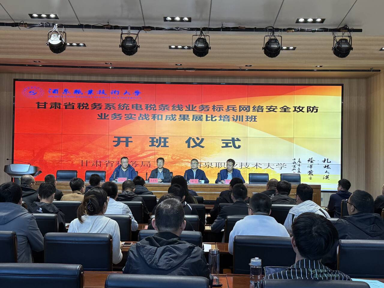 国家税务总局甘肃省税务局信息中心副主任谢江,酒泉职业技术大学党委委员、副校长王金明等领导出席开班仪式。