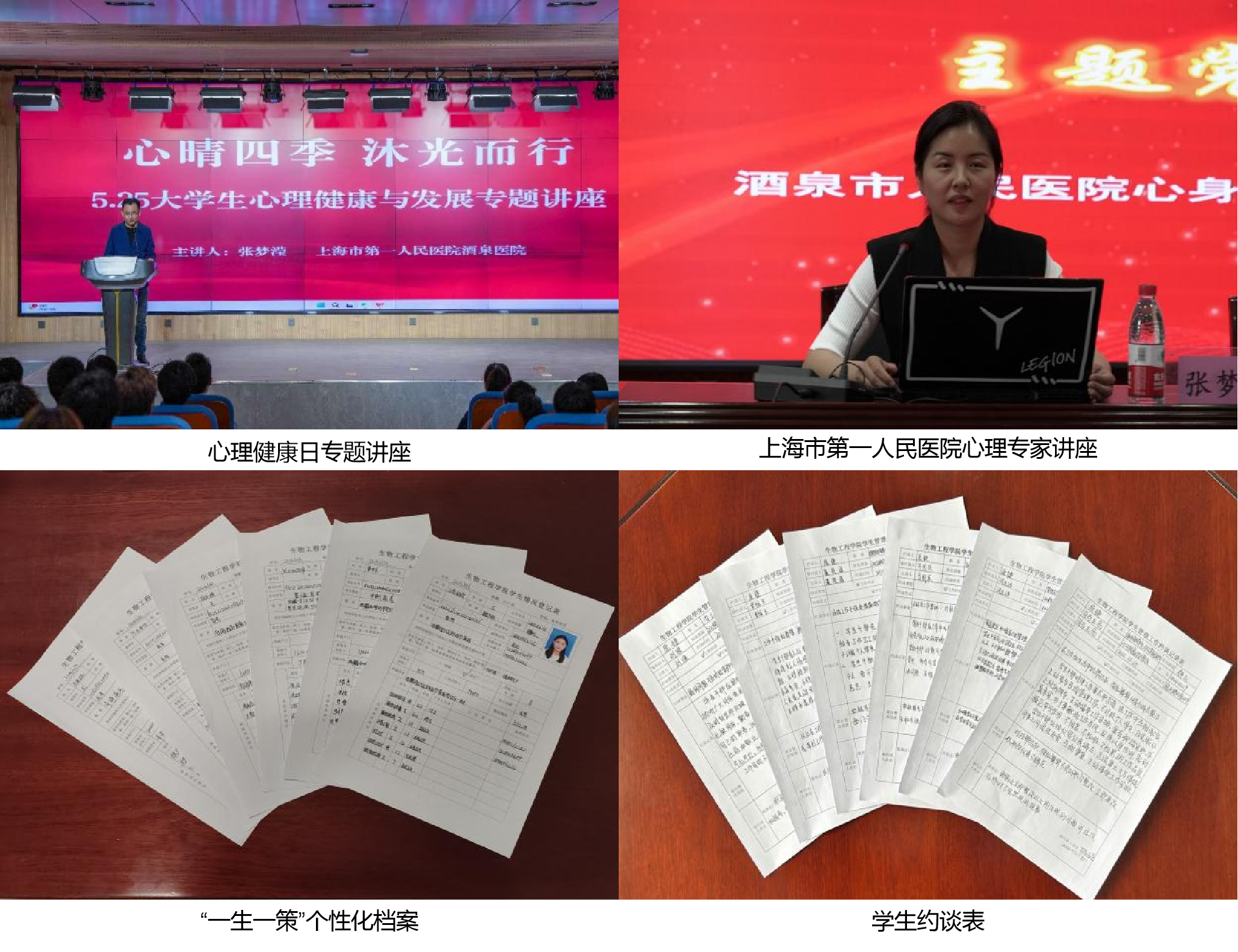 学院通过开展新生入学心理健康教育讲座、新生心理健康普查、5.25大学生心理健康与发展专题讲座等活动,以心理问题早发现、早报告、早干预为心理育人理念,建立“一生一策”的个性化档案,引导学生遇到问题勇于求助,为大学生的健康成长提供了坚实的个性化支持。