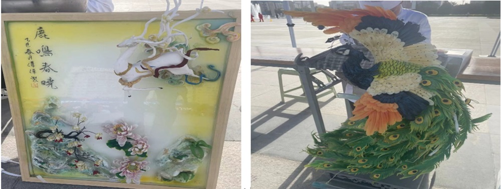 酒泉职业技术大学旅游与烹饪学院烹饪工艺与营养系系主任杨国斌副教授,作为行业内的资深专家和教育工作者,率队参与了此次意义非凡的活动。在此次竞赛启动仪式上,杨国斌副教授带领的团队充分展现了学院在烹饪教育方面的卓越成果。一件件精美的手工雕刻纷纷亮相。这些作品不仅展现了选手们精湛的技艺,更融入了他们对酒泉文化的深刻理解和创新表达。