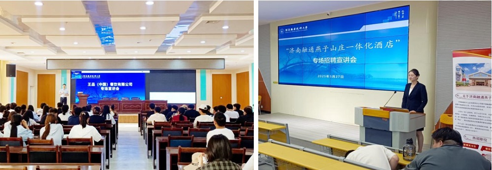 2025年5月27日至28日,旅游与烹饪学院联合王品(中国)餐饮有限公司、济南融通燕子山庄有限责任公司(央企),成功举办2026届毕业生实习专场宣讲会。通过企业宣讲、订单班选拔、面试洽谈等形式,为烹饪工艺与营养、酒店管理与数字化运营专业学生搭建高质量实习、就业平台,深化了校企协同育人实践。