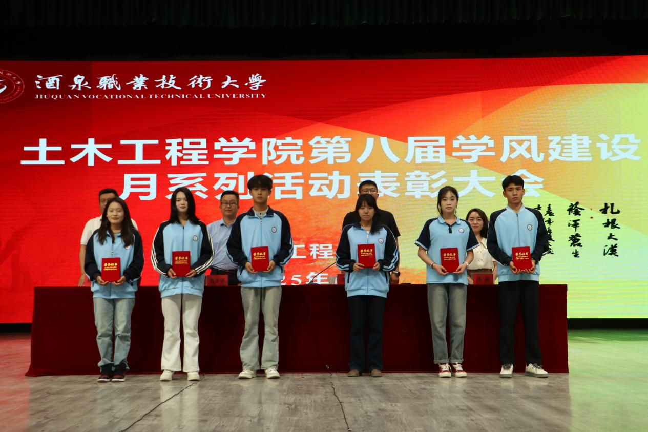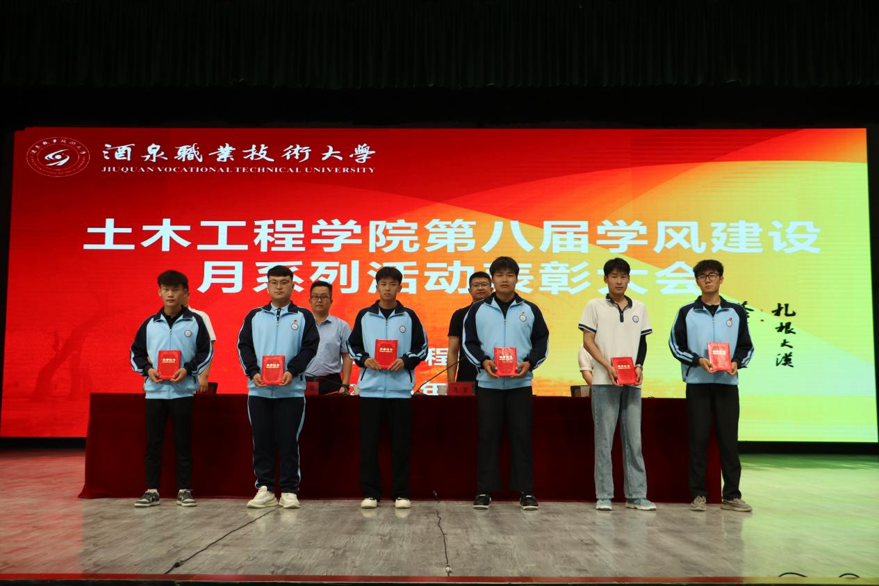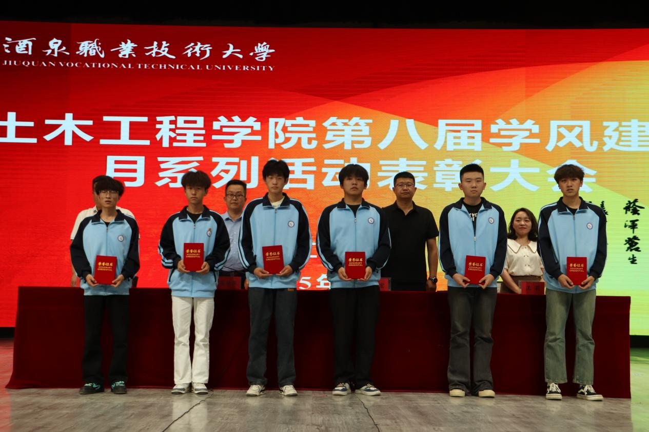 学院副院长马宏宣读《土木工程学院关于“第八届学风建设月”主题活动的表彰决定》文件,并为获奖集体和个人颁发了荣誉证书。同时,为酒泉职业技术大学首届“知行砺能·赋能成长”运动会中表现优秀的学院运动员颁发了荣誉证书。
