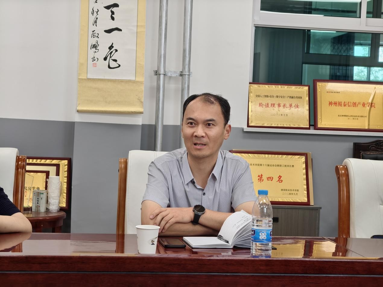 参观后,杨芯一行与电子与信息工程学院领导进行了座谈,双方就合作框架协议的具体条款展开了深入讨论,在专业技术岗位认证培训、建立数字安全人才培养基地、共同推进课题研究等方面达成了广泛共识。
