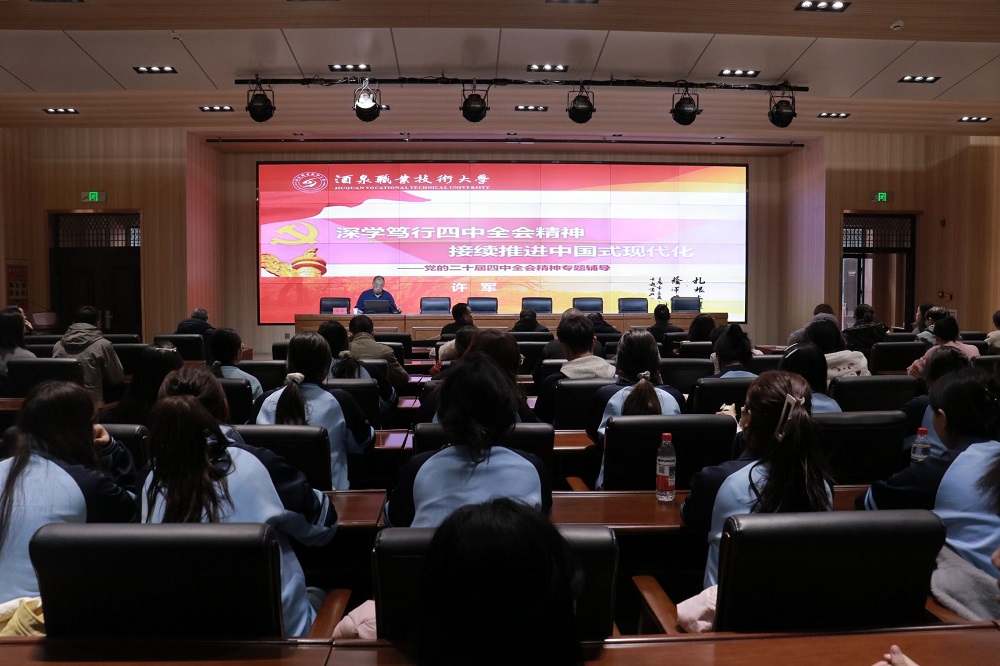坚定为党育人为国育才初心,推动职业教育与区域发展同频共振。2025年11月21日下午,酒泉职业技术大学副书记、校长许军在弘毅楼C座102会议室,为旅游烹饪学院党支部和机关第三党支部的全体党员开展党的二十届四中全会精神专题辅导。
