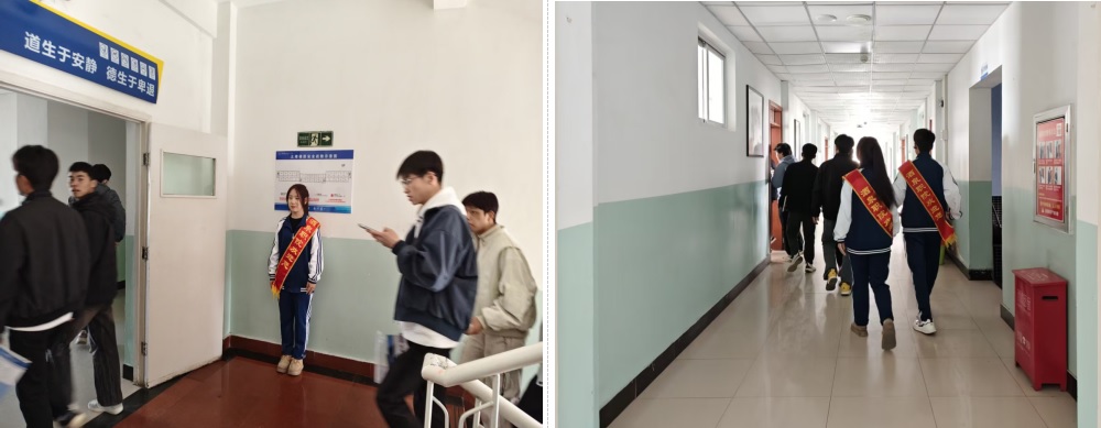 监督岗实行轮流执勤、分工负责的工作机制,全体监督员严格恪守执勤规范,统一着装并佩戴值岗绶带,做到按时到岗、不迟到、不早退,以饱满的热情、严谨的态度投入执勤工作。执勤期间,学子们以身作则、率先垂范,态度谦和、举止得体,既坚守原则、认真履职,主动劝导课堂迟到早退、仪容仪表不规范、言行举止不文明等行为,及时反馈教学区域学生行为养成中的突出问题,更注重以自身文明言行引导身边同学,充分展现了当代大学生良好的文明礼仪素养、扎实的职业素养和昂扬的精神风貌,为营造优良教学环境、助力学生行为养成筑牢基础。