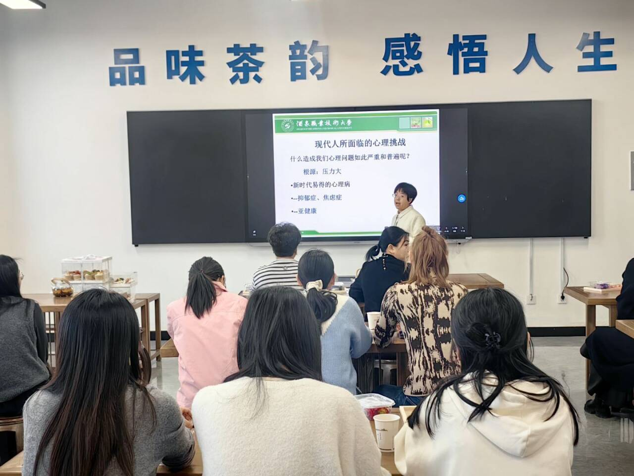 致辞结束后,“解压—共享幸福生活”心理主题座谈温情开展,酒泉职业技术大学朱海娟教授主持。座谈围绕职场压力缓解、生活情绪调节、身心健康养护等内容展开,大家敞开心扉、畅所欲言,分享工作中的收获与困惑、生活中的温暖与感动,在交流中彼此赋能,进一步学会了科学解压的方法,增强了热爱生活、积极工作的信心。