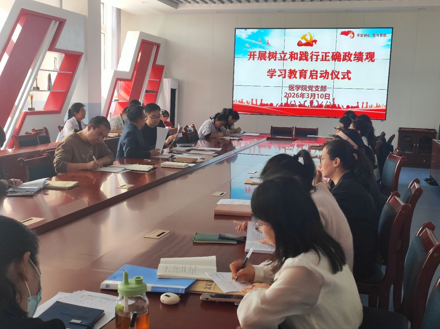 会议认真传达学习了中共中央办公厅印发的《关于在全党开展深入贯彻中央八项规定精神学习教育的通知》精神,集中学习了《关于印发〈酒泉职业技术大学深入开展树立和践行正确政绩观学习教育工作方案〉的通知》《医学院开展树立和践行正确政绩观学习教育工作方案》等文件精神。会议要求,要准确把握学习教育的总体要求、目标任务和方法步骤,深刻认识开展学习教育是今年党的建设的一项重要任务,对于推动学院事业高质量发展、办好人民满意的医学教育具有重要意义。