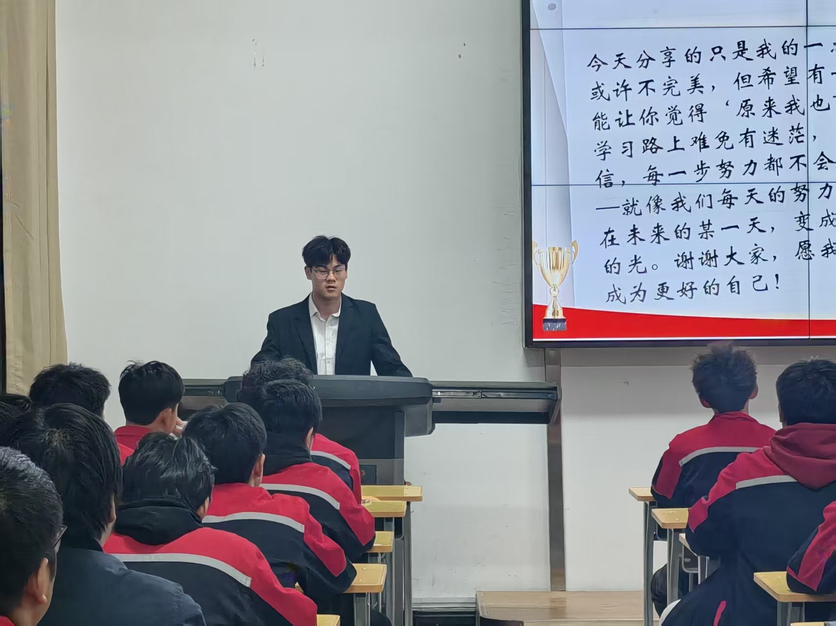 荣获国家励志奖学金和校级优秀学生干部的黄凯同学聚焦时间管理,结合自身学习与团学活动的时间安排,介绍了任务拆解、优先级排序、复盘总结等实用方法,鼓励同学们专注当下,通过科学的时间管理提升综合素质。