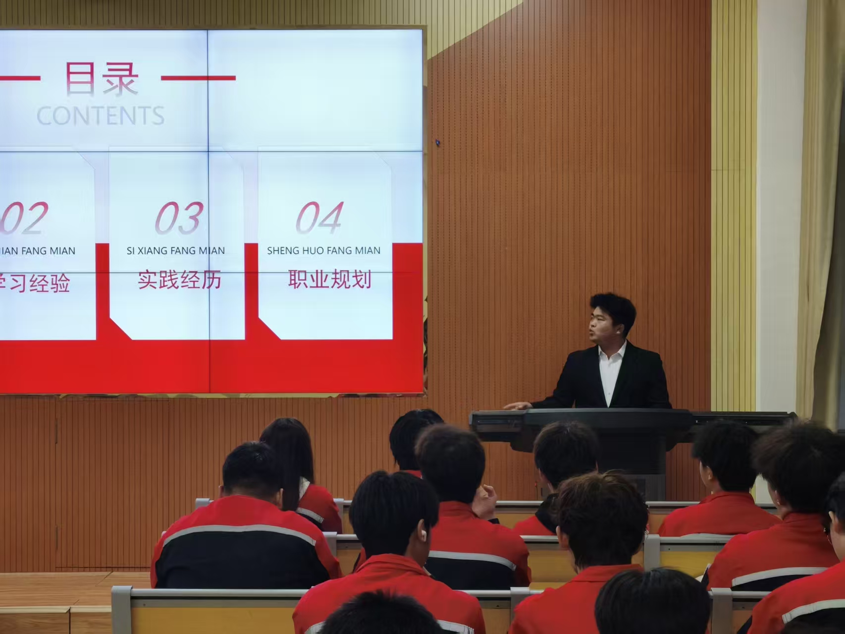 连续两年获得校级三好学生伏鹏同学围绕“学习、实践和职业规划”三大板块,分享了自己的成长路径。他结合自身专业学习经历,讲解了如何搭建系统的知识体系、高效完成学业任务,同时分享了参与实践活动的收获与感悟,引导同学们明确职业方向,提前做好规划,将学习与实践紧密结合,在实践中明确自身短板、提升综合素养,为未来职业发展筑牢基础。