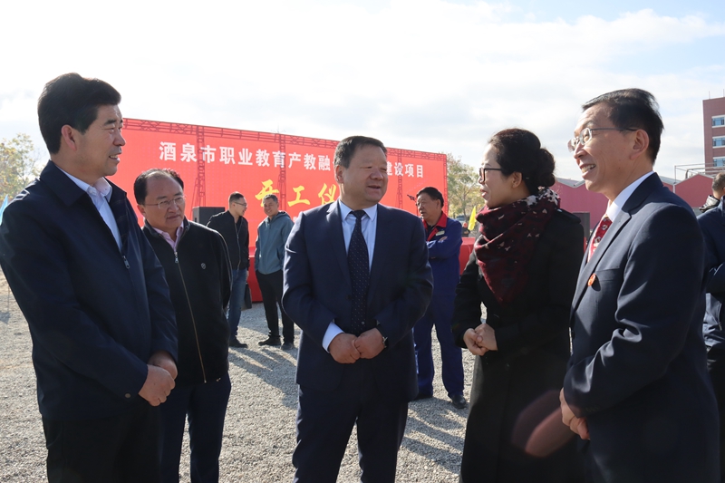 2021年10月9日,酒泉市职业教育产教融合示范区重点项目集中开工仪式在学校举行。市委常委、宣传部长义战鹰出席并宣布项目开工。副市长赵峰主持开工仪式,市政协副主席杜志学出席,学校党委书记、校长易志军出席并致辞。市直相关部门负责人出席仪式。