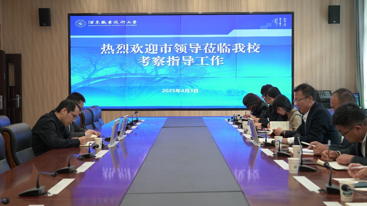 2025年4月3日下午,酒泉市副市长尹艳镇一行莅临酒泉职业技术大学,专题调研指导校企产教融合及校企合作工作,重点考察学校化工学院与酒泉市域内工业园区企业的科研项目合作进展,并就前期企业调研意向的落实情况进行督导。学校党委委员、副校长王金明,化工学院负责人及相关教师代表参加调研座谈。