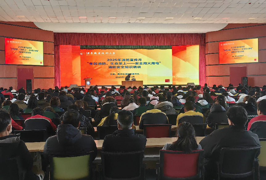 本次讲座特邀酒泉市消防救援支队的专业消防员担任主讲,以《校园火灾防火教育》为主题,结合近年来全国及本地发生的典型火灾案例进行了深入剖析,系统讲解了消防安全基础知识、常见消防器材的使用方法、日常防火常识、火场逃生与自救关键技能、火灾有效预防措施等五个方面的核心内容。围绕“识风险、懂预防”的科普教育主题,着重强调了提升风险防范意识和掌握预防技能的重要性,引导师生从源头上杜绝火灾隐患。