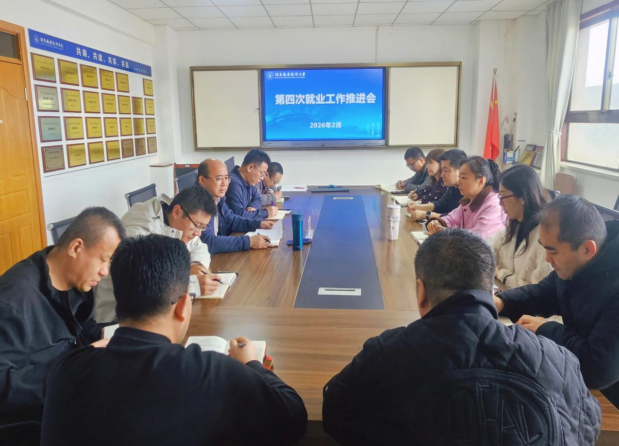 2026年2月25日上午,学校在行知楼二楼会议室召开2026届毕业生第四次就业工作推进会。会议由党委委员、副校长杨洁主持。各学院分管就业工作负责人及就业指导服务中心全体人员参会。