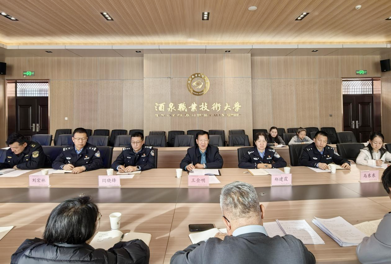 2026年2月26日下午,学校在弘毅楼C103会议室召开校园安全综合治理工作会议。酒泉市肃州区公安局政保大队大队长郑建霞,学校党委委员、副校长王金明出席会议。肃州区公安局政保、网安、派出所,市场监管、解放路社区以及学校宣传统战部、学生工作部、后勤管理处负责人,各学院、职业中专分管学生工作副院长参加会议。
